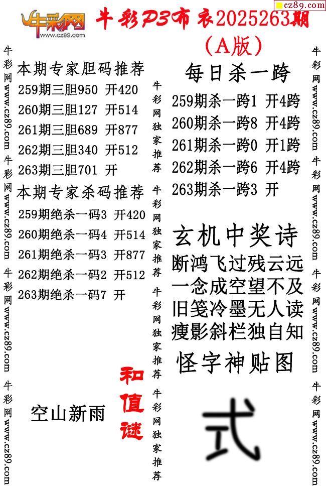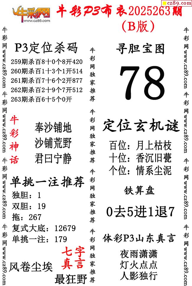 牛彩P3布衣25年263期AB版图谜(精华版)