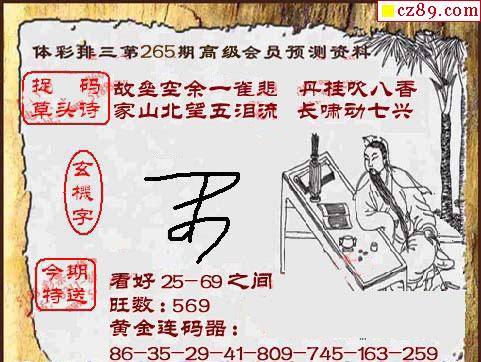 正版天庚25年265期体彩p3图迷