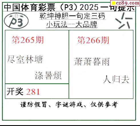 乾坤一句定三码25年266期P3图谜