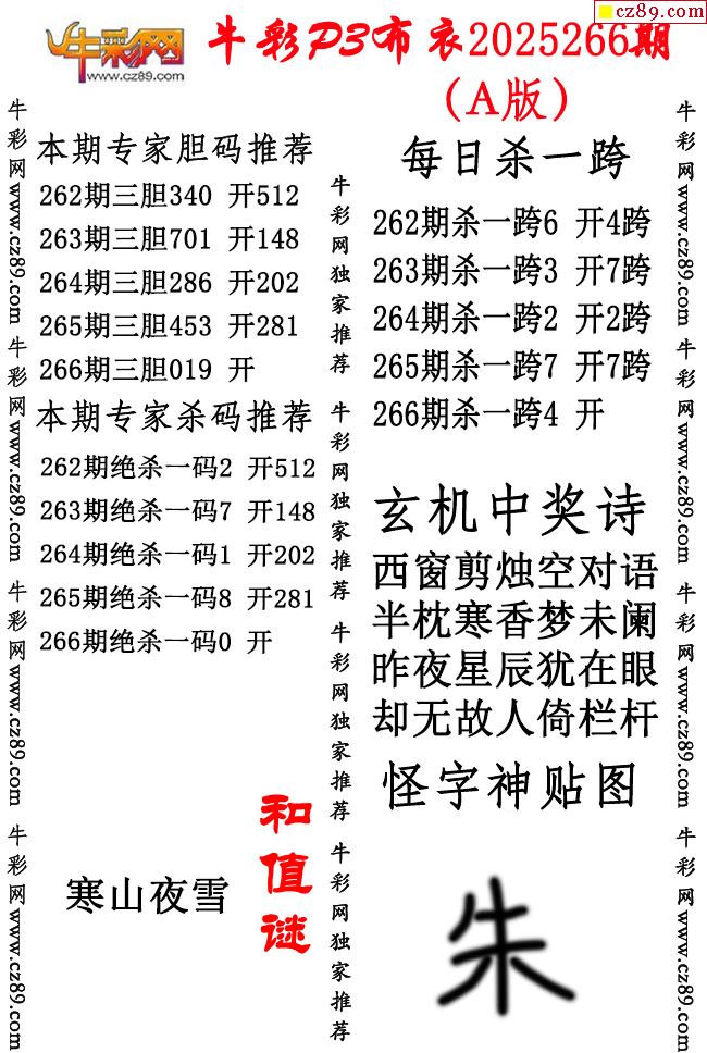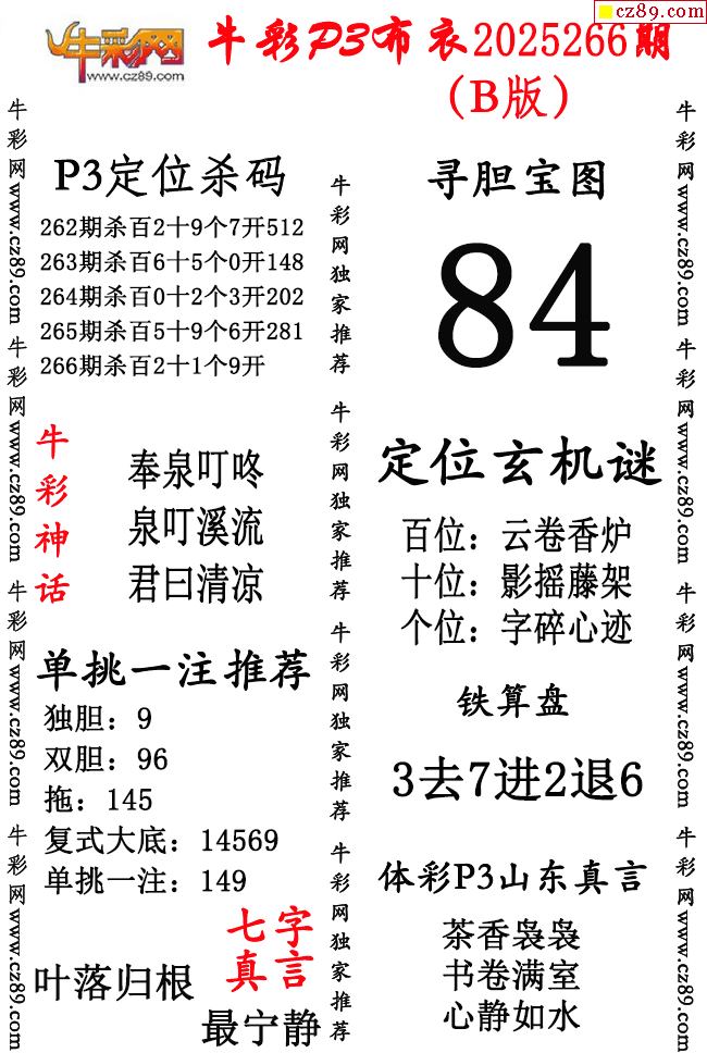 牛彩P3布衣25年266期AB版图谜(精华版)