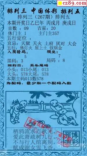 鸿运当头双胆报号269期体彩P3图谜
