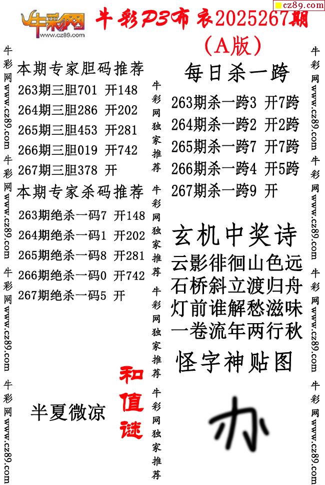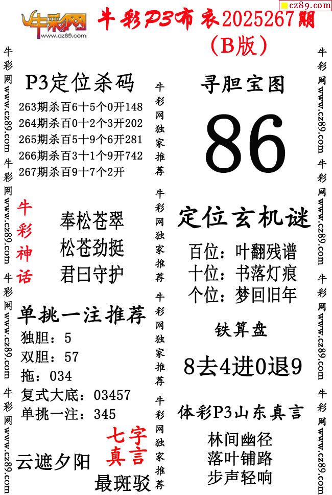 牛彩P3布衣25年267期AB版图谜(精华版)