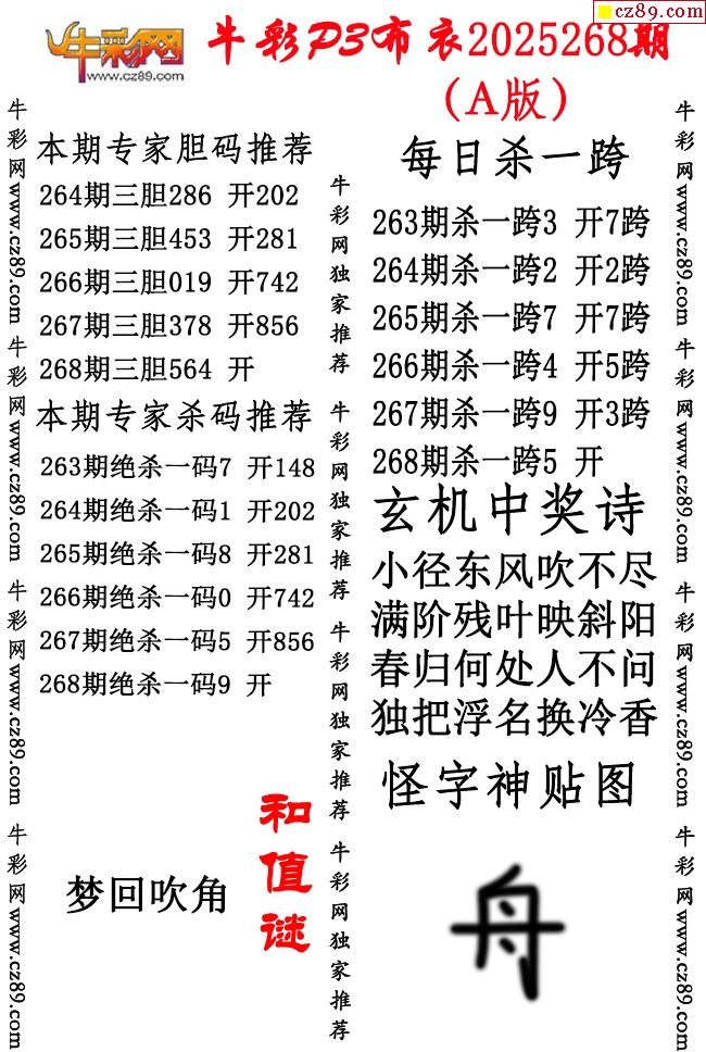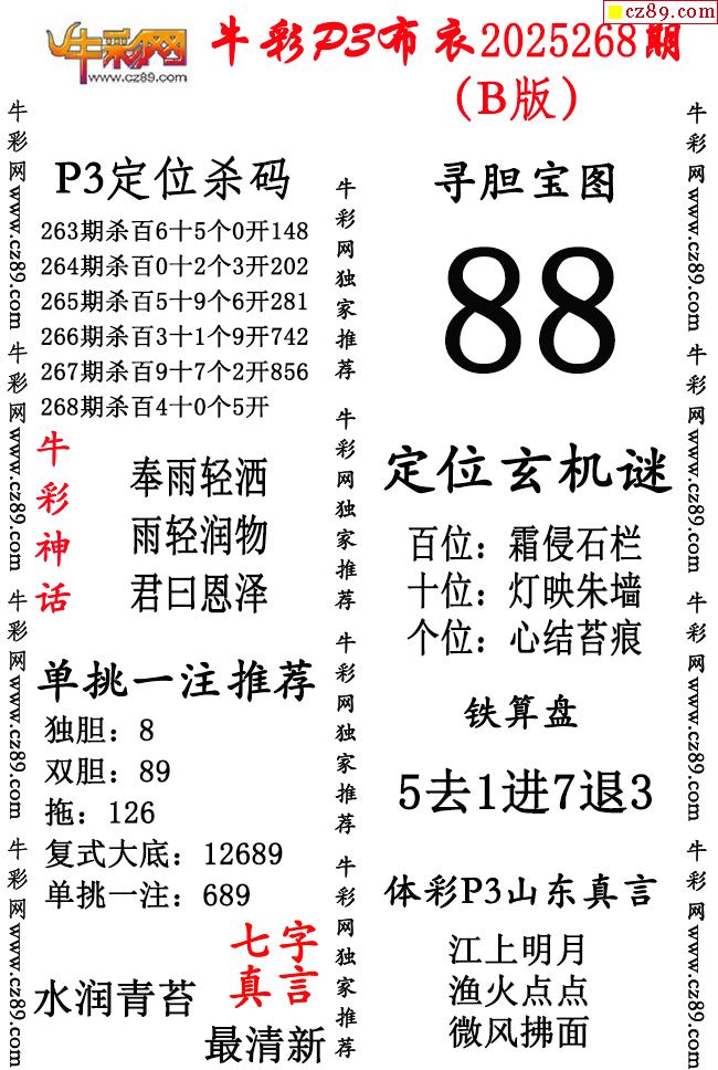 牛彩P3布衣25年268期AB版图谜(精华版)