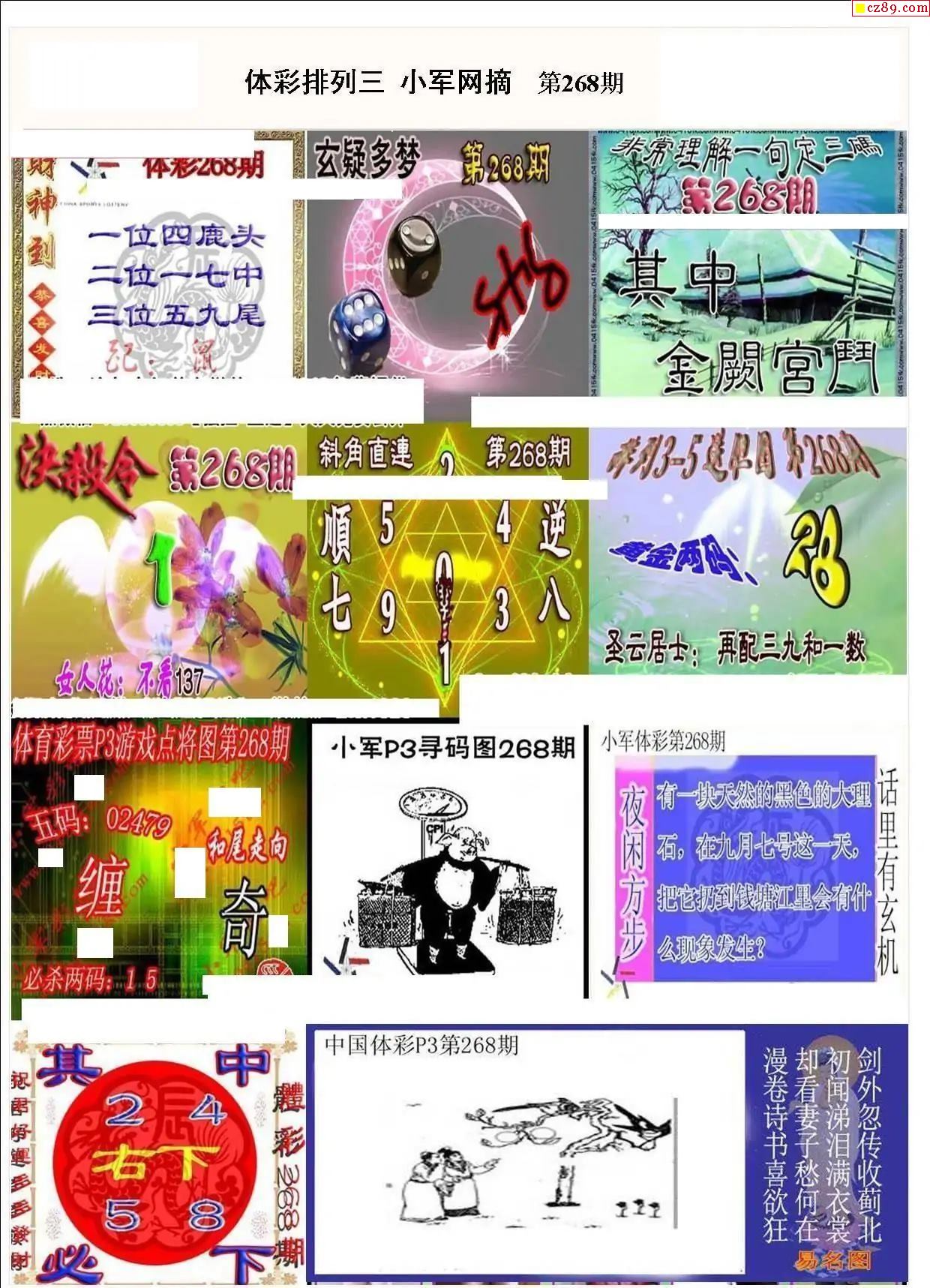小军网摘25年268期体彩P3彩报图谜