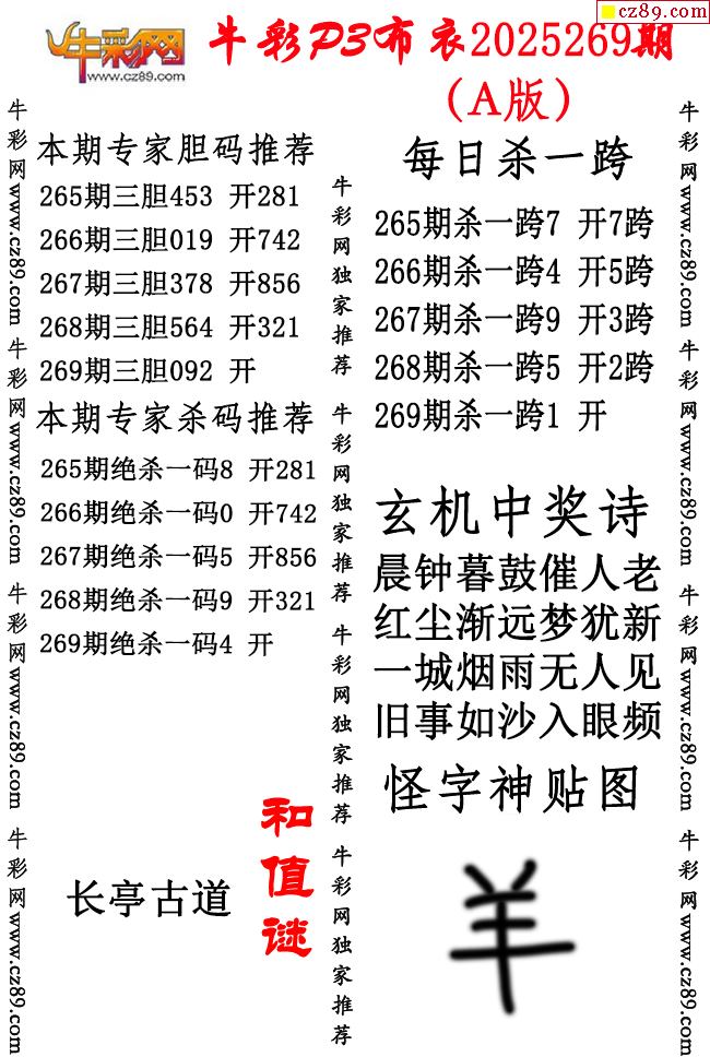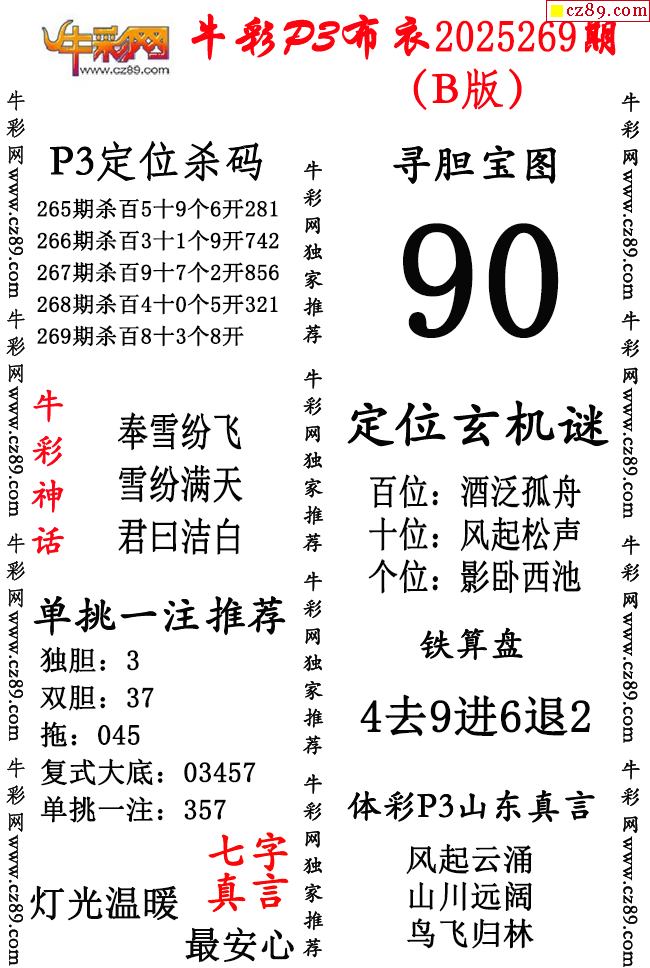 牛彩P3布衣25年269期AB版图谜(精华版)
