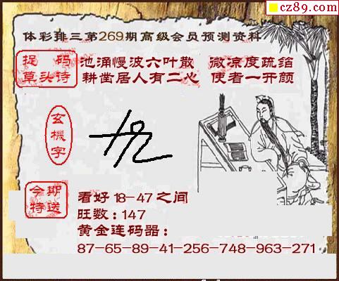 鸿运当头双胆报号269期体彩P3图谜