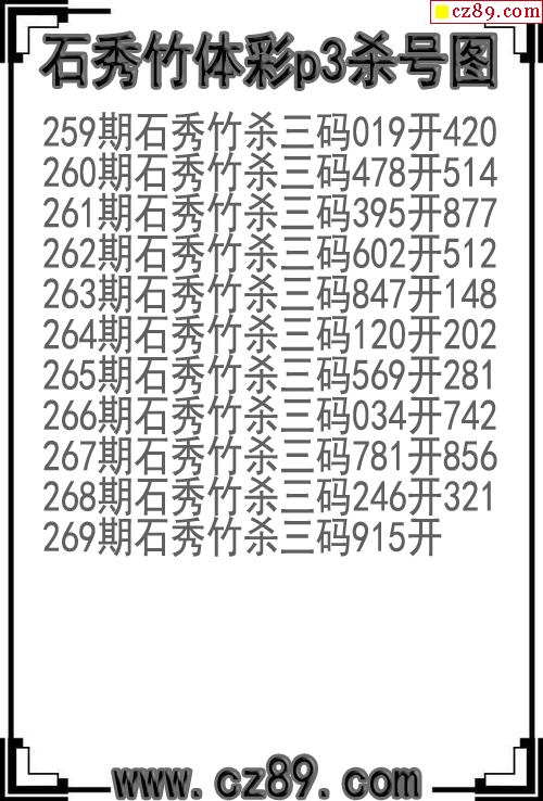 25年269期石秀竹体彩p3杀号图