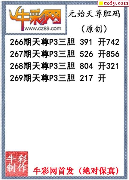 • 元始天尊胆码图269期体彩P3图谜(原创)10-10