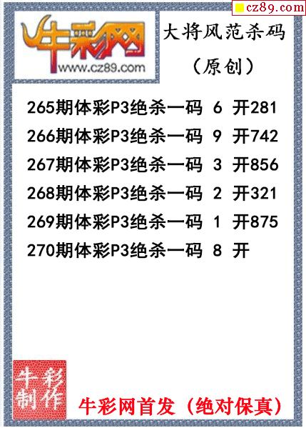 大将风范杀码270期体彩p3图谜(原创)