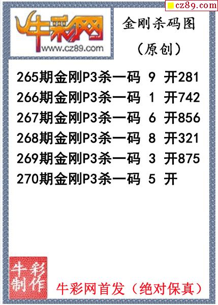 金刚杀码270期体彩P3图迷(原创)