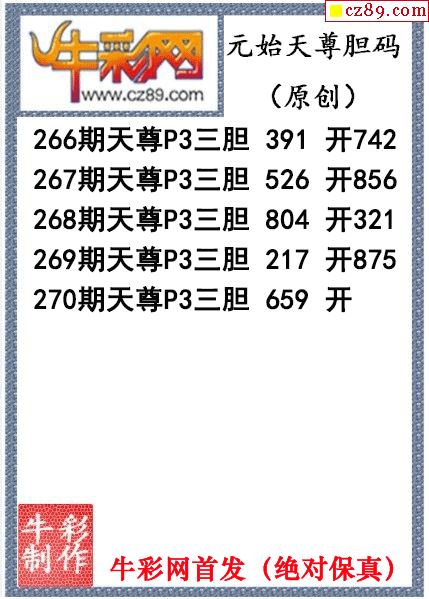 元始天尊胆码图270期体彩P3图谜(原创)