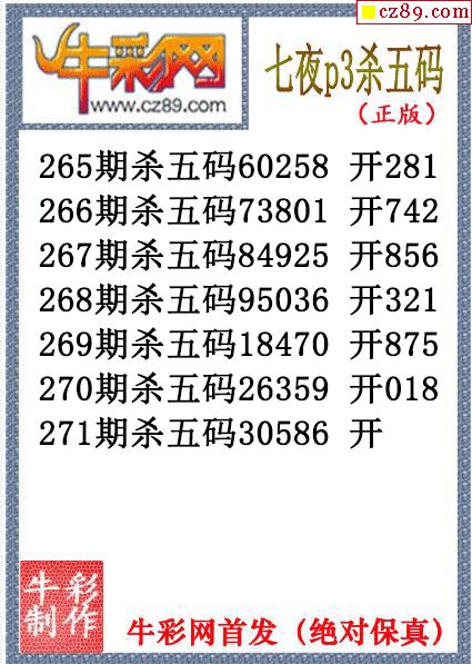 七夜杀码271期体彩P3图谜(原创)
