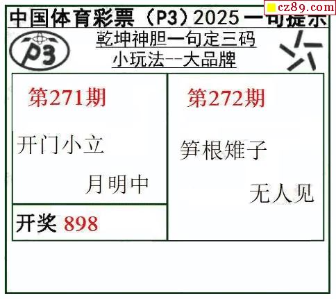 乾坤一句定三码25年272期P3图谜