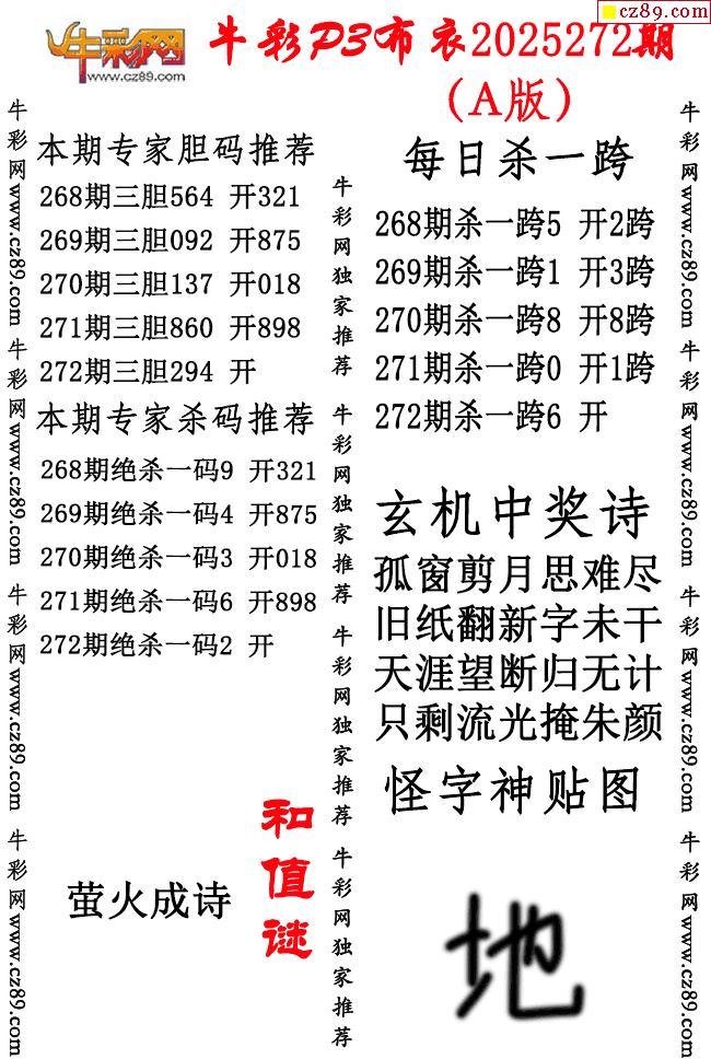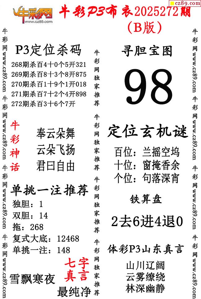 牛彩P3布衣25年272期AB版图谜(精华版)