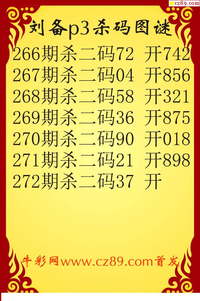 刘备杀码25272期p3原创图谜