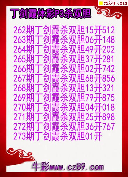 25年273期丁剑霞体彩P3杀双胆图