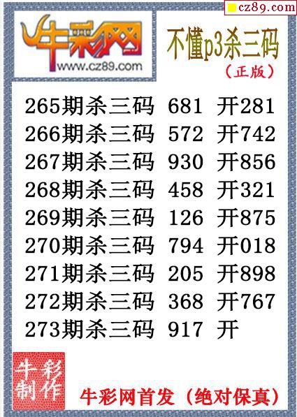金刚杀码273期体彩P3图迷(原创)