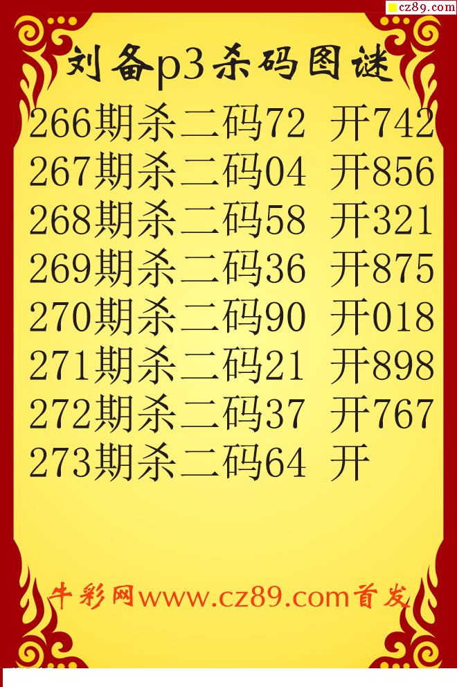 • 天龙杀码273期体彩P3图谜(原创)10-14