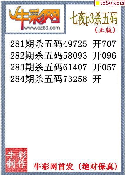 七夜杀码284期体彩P3图谜(原创)