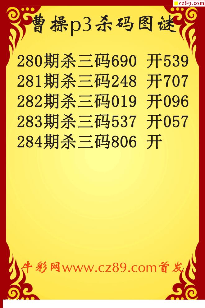 曹操杀码25284期p3原创图谜