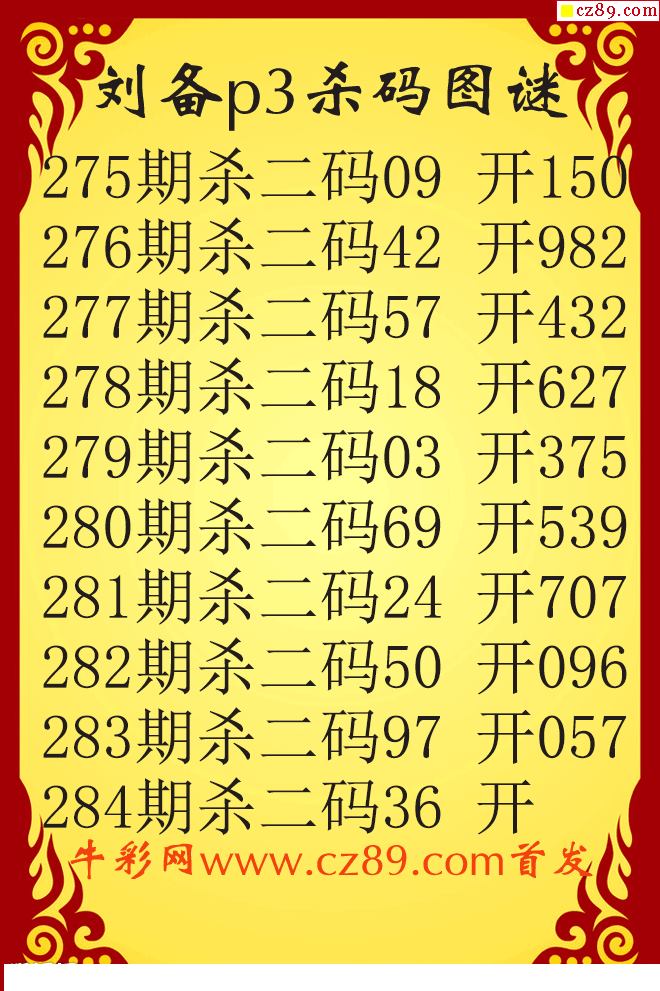 • 孤城杀码280期体彩P3图谜(原创)10-25