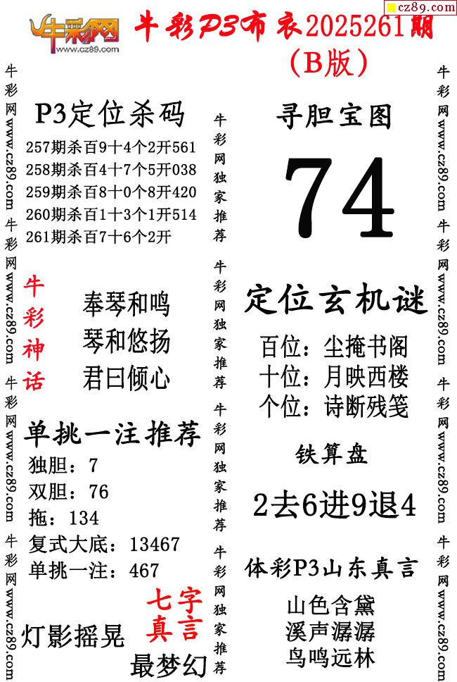 牛彩P3布衣25年261期AB版图谜(精华版)