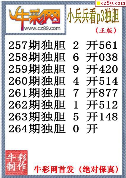 小兵兵独胆263期体彩P3图谜(原创)