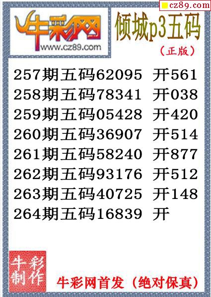 倾城胆码263期体彩P3图谜(原创)