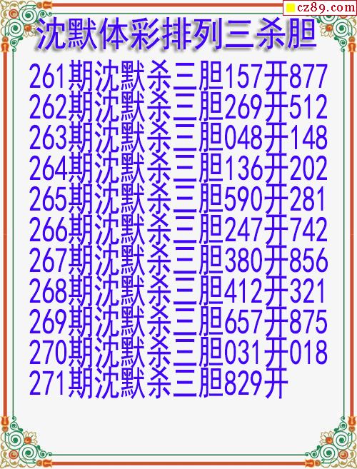 25年271期沈默体彩排列三杀胆图迷