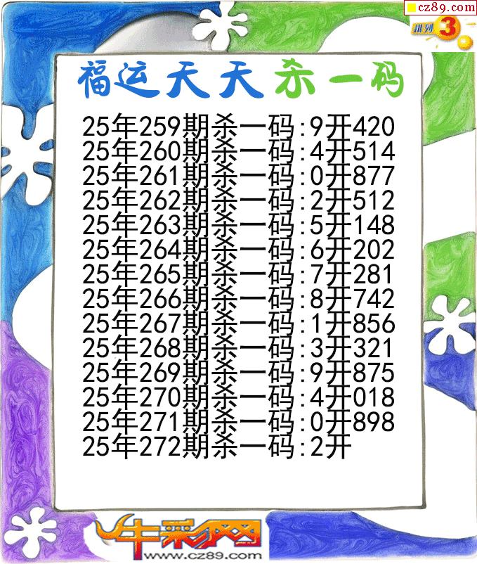 福运天天杀一码272期体彩P3图谜