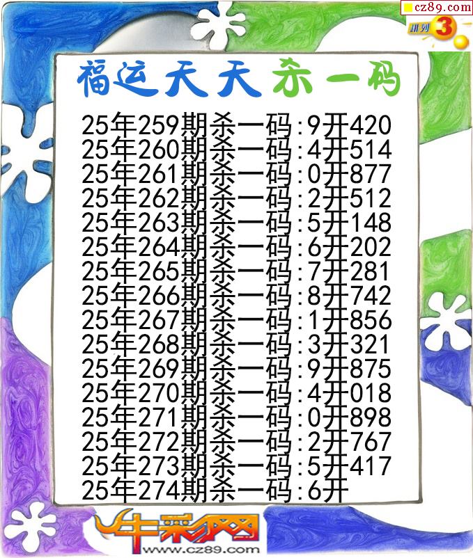 福运天天杀一码274期体彩P3图谜