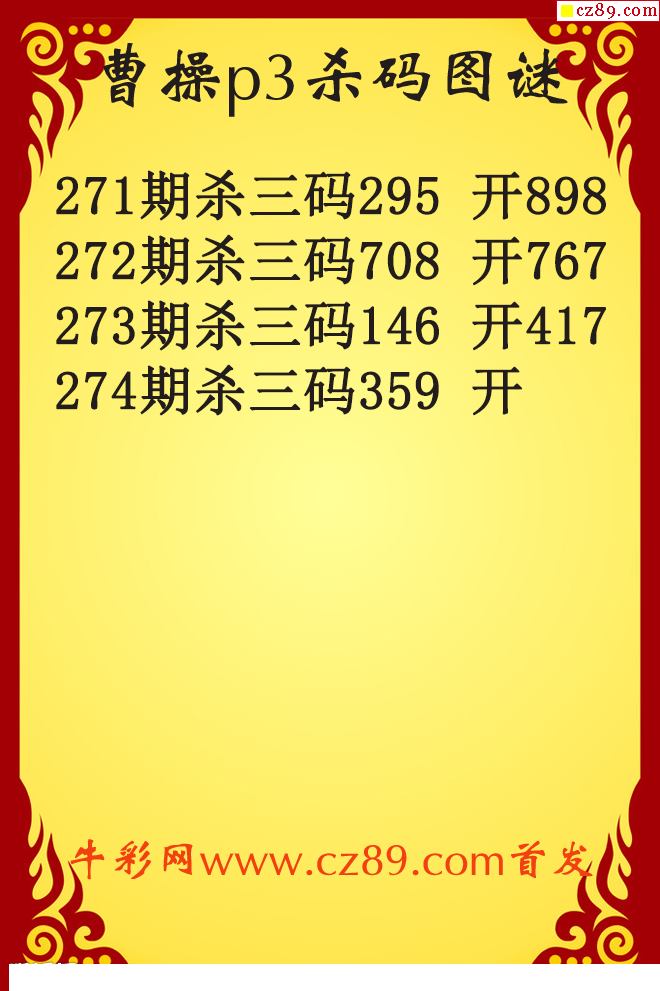 肖邦杀码2025年274期P3图谜(原创)