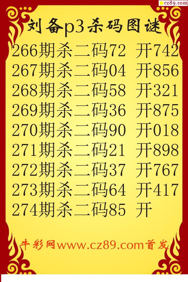 刘备杀码25274期p3原创图谜