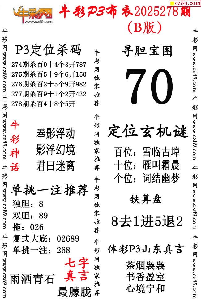 牛彩P3布衣25年278期AB版图谜(精华版)