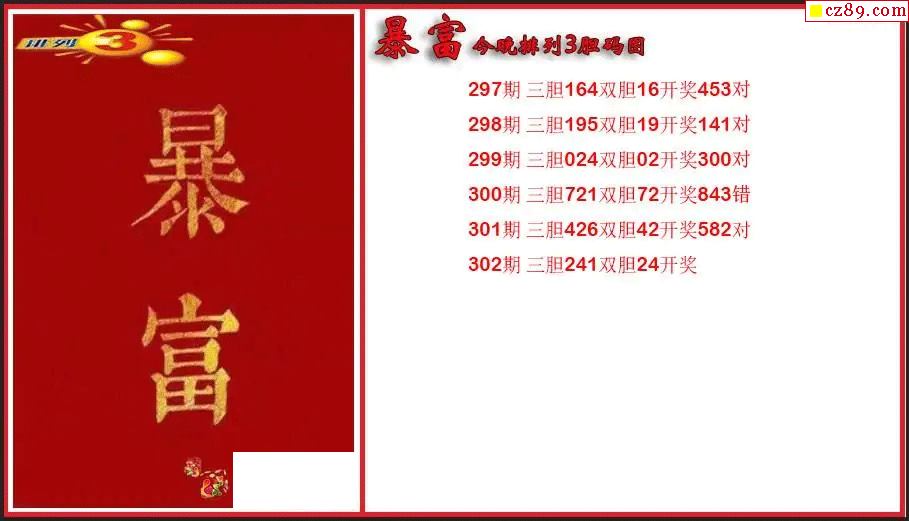 2025302期P3暴富今晚胆码图