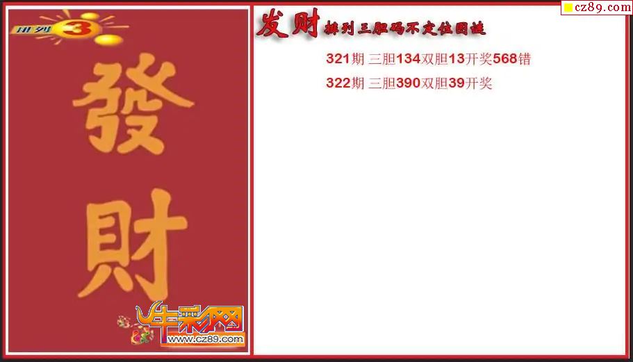 2025322期P3发财胆码不定位图谜